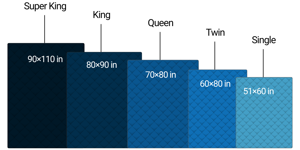 • King (80″ x 90″) – Spacious and comfy